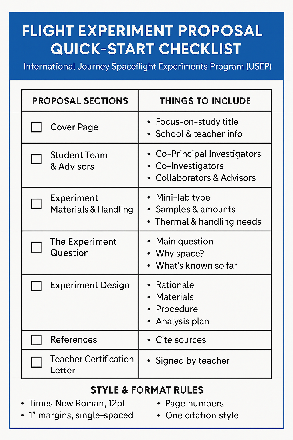This comprehensive guide is designed for students eager to create innovative microgravity experiments. It covers essential principles, methodologies, and best practices for experiment design, ensuring participants are equipped with the knowledge to develop...